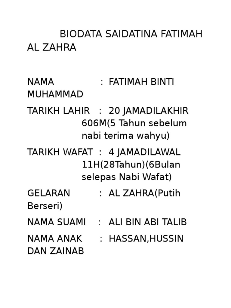 DOC) Biografi fatimah azzahra | luthfi hanifah - Academia.edu