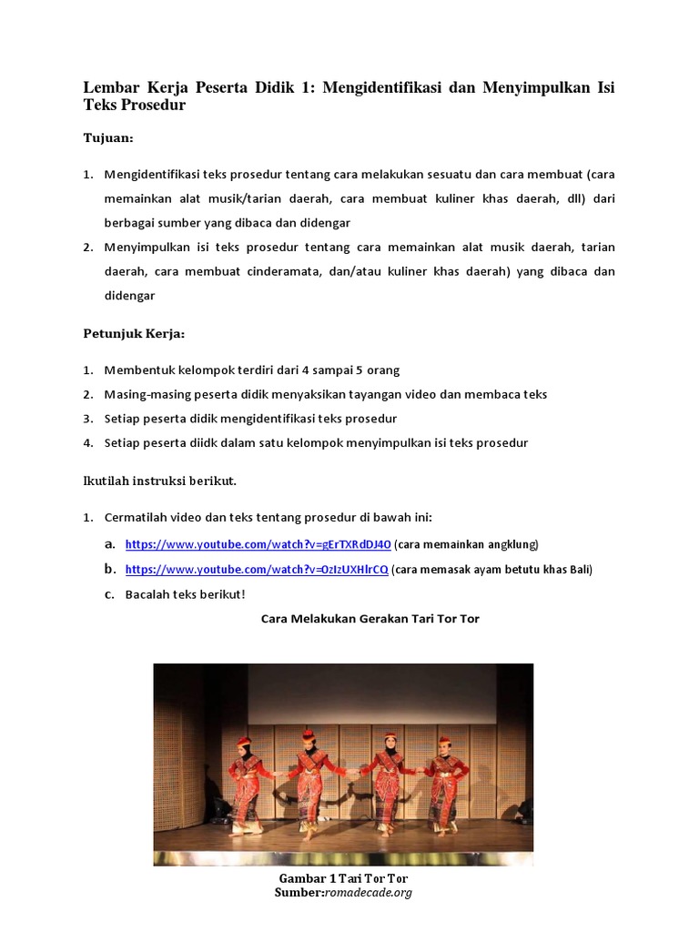Lembar Kerja Peserta Didik 1: Mengidentifikasi dan Menyimpulkan Isi Teks Prosedur