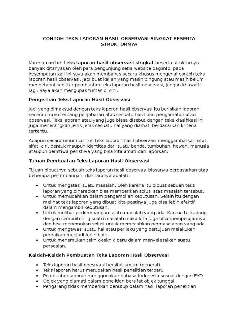 DOC) CONTOH TEKS LAPORAN HASIL OBSERVASI SINGKAT BESERTA …
