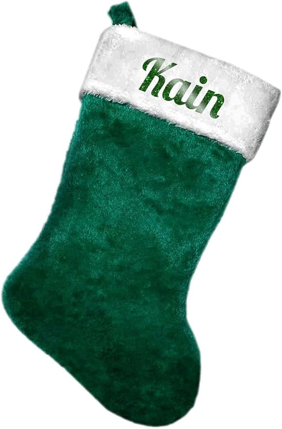 Amazon.com: Kain Green Glitter Plush Christmas Stocking, 8.5 in. x …