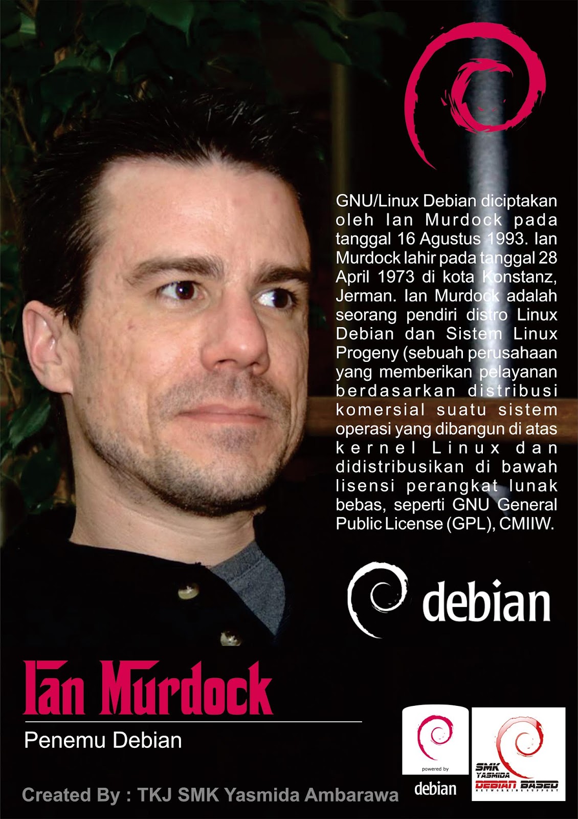 Design Poster Penemu Debian (Ian Murdock) Jurusan TKJ - Abdur Rozak