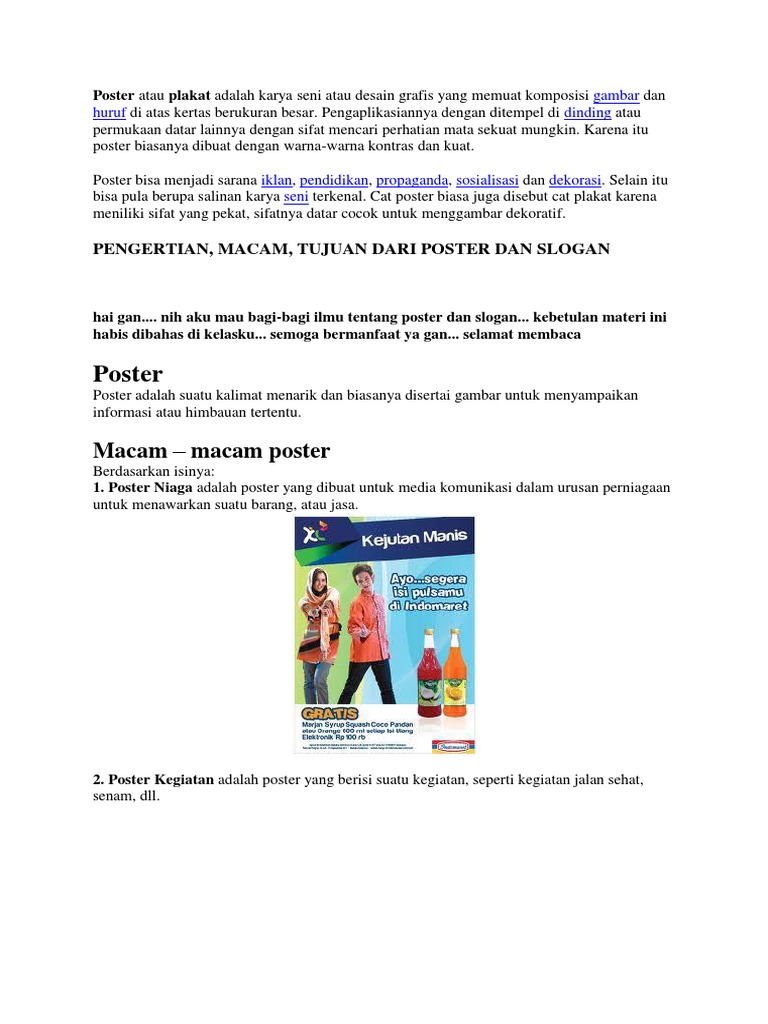 Macam,Pengertian,Slogan dan Poster: PENGERTIAN, MACAM, TUJUAN DARI POSTER DAN SLOGAN