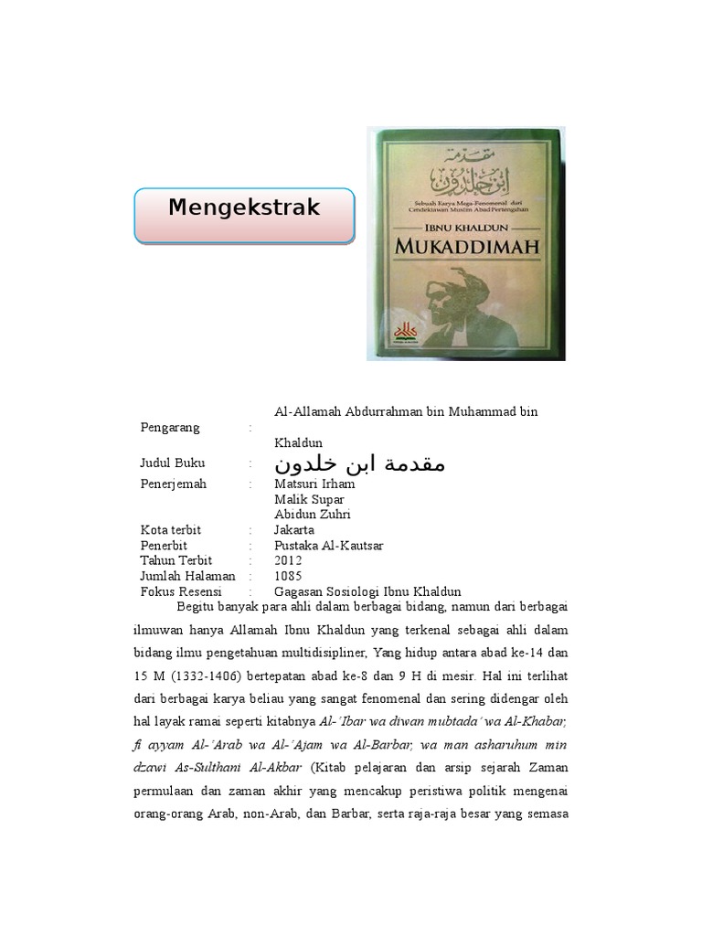 DOC) resensi buku Ibnu Khaldun Mukkadimah | gujiz Uyeah - Academia.edu