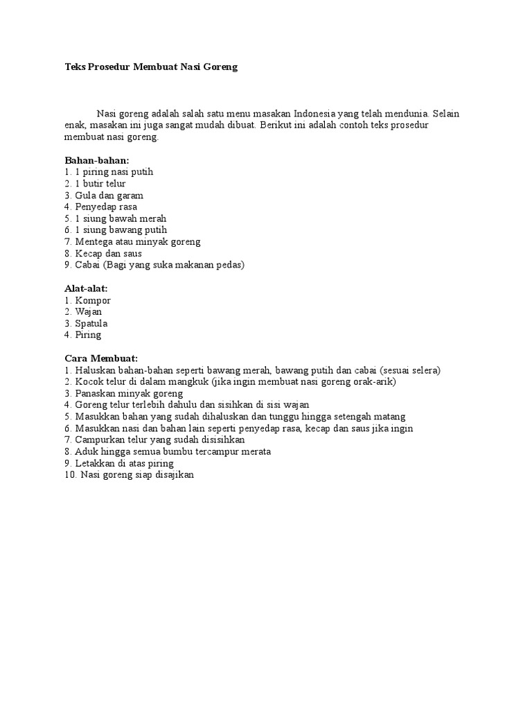 teks prosedur memasak nasi goreng dan jenis dan sturkturnya - Brainly.co.id