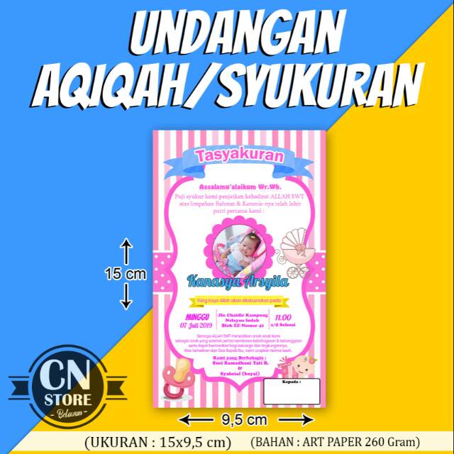 Undangan Aqiqah / Tasmiyah / Syukuran / Tasyakuran / Marhabah / Ultah (Minimal order 100 pcs) | Shopee Indonesia