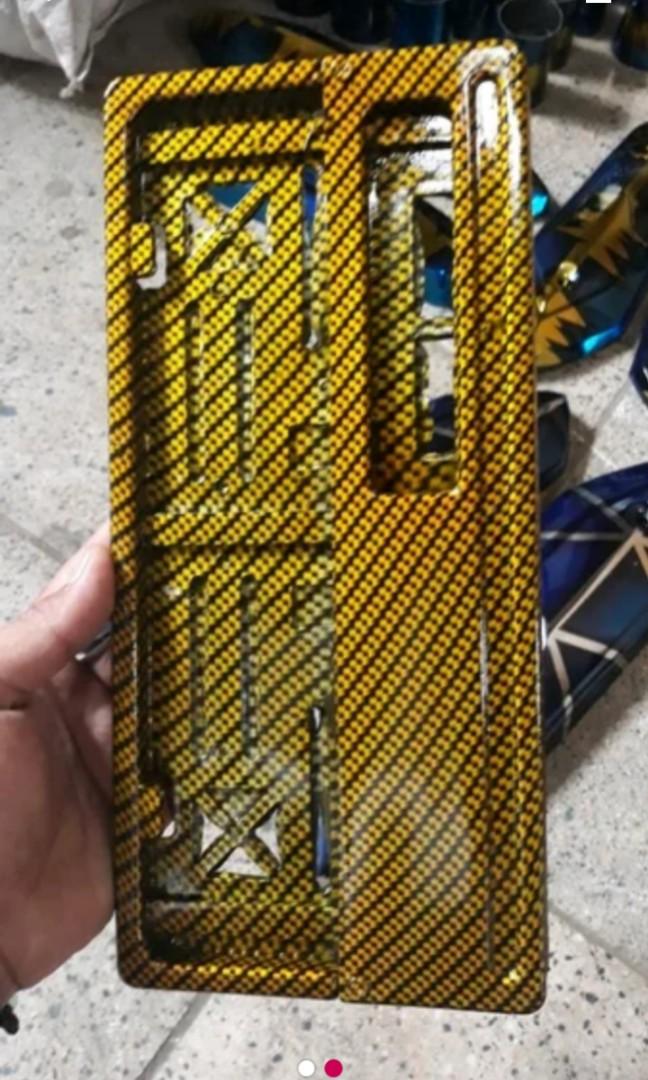 cover plat nomor carbon celup wrna gold depan belakang, Motor di Carousell