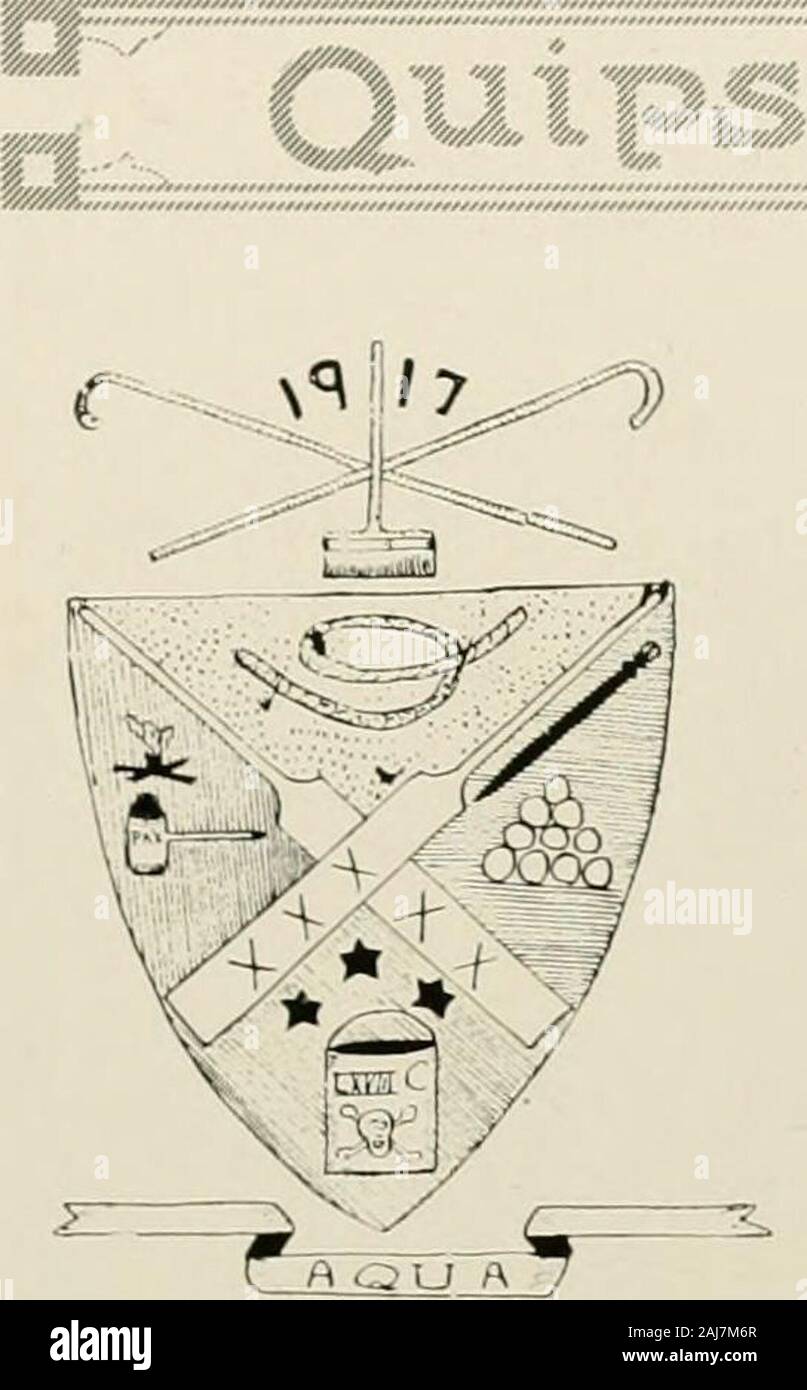 QUIPS AND CRANKS - 1918 . 200. w/y €tk O. i;f)e ^qua Club Hiems Chapter—Established 1917.Patron—Thales, the Grecian Philosopher.Password—We Crave Knowledge.Favorite Trees—Pine and Weeping Aillow.Official Anthem—By the Sea.Motto :—Aqua, Aqua, Everywhere …