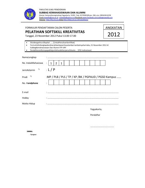PELATIHAN SOFTSKILL KREATIVITAS : L / P - Blog at UNY dot AC …