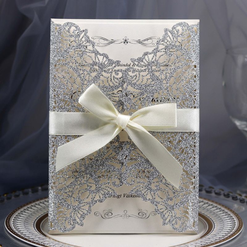 1 Pcs Emas Biru Perak Glitter Kertas Laser Memotong Kartu Undangan Pernikahan dengan Pita Pribadi Dekorasi Pernikahan Perlengkapan Pesta|Kartu & Undangan| - AliExpress