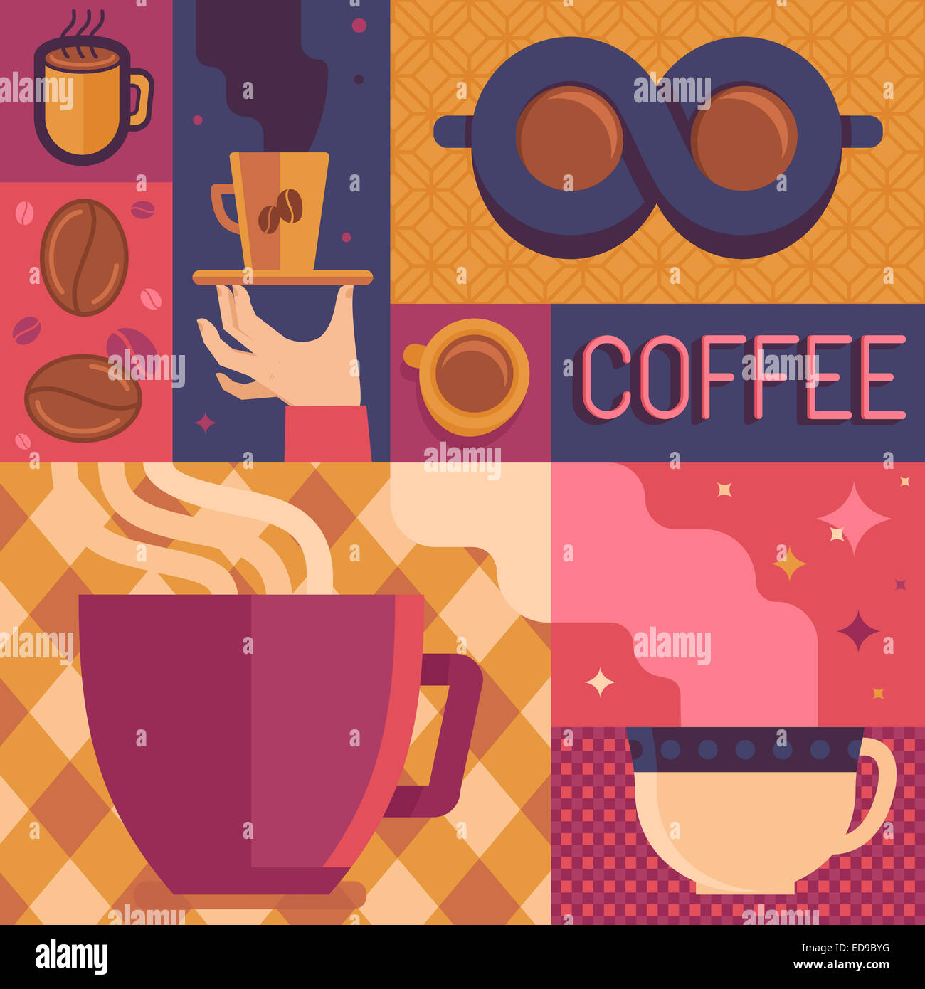 Coffee poster or greeting card template in flat retro style Stock …