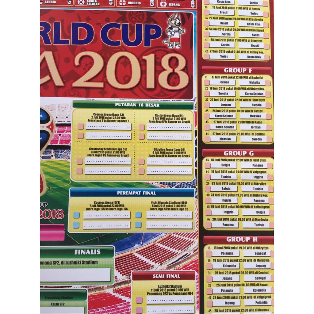 Jual Poster Jadwal Pertandingan Piala Dunia Russia 2018 - Kota Gorontalo - Wirausa Store | Tokopedia