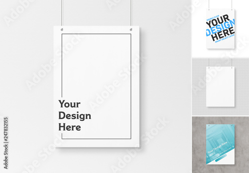 Isolated A4 Hanging Poster Mockup. Buy this stock template and explore similar templates at Adobe Stock | Adobe Stock