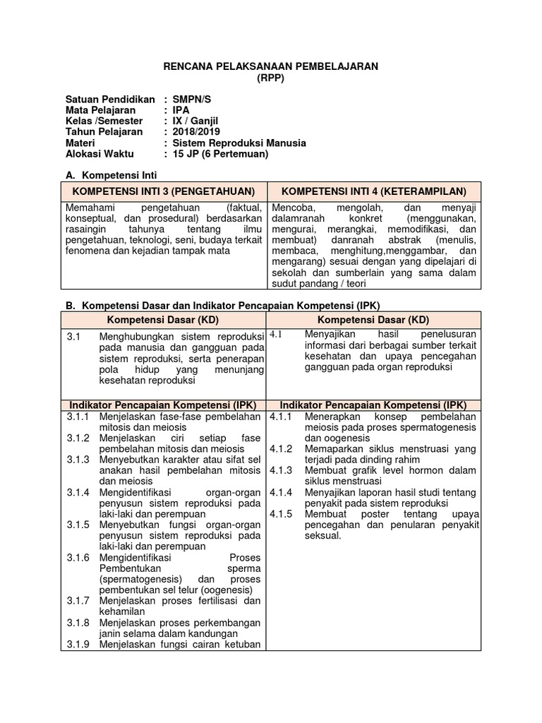 Rpp kelas 9 sistem reproduksi kurtilas