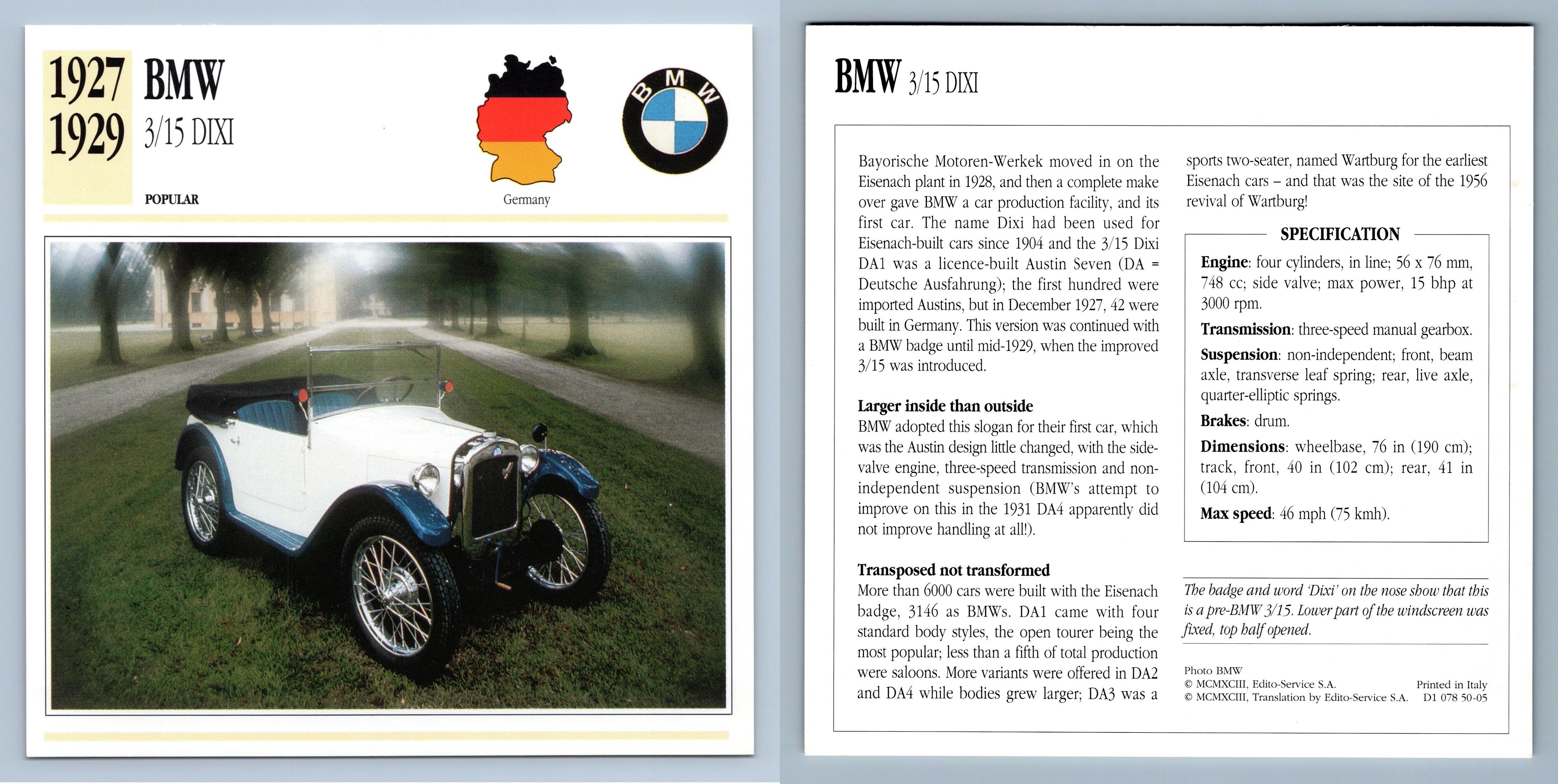 BMW - 3/15 Dixi - 1927-29 Popular Collectors Club Card