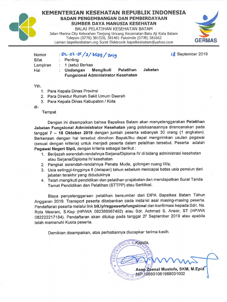 Surat Undangan Mengikuti Diklat. - Pusat Pendidikan dan Pelatihan BKPM | Facebook