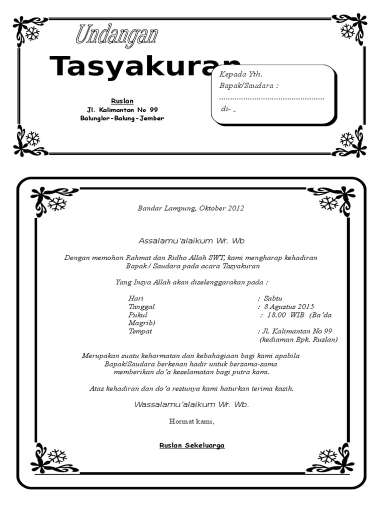 Contoh surat undangan syukuran