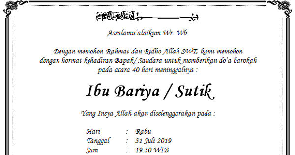 Download format undangan tahlil 40 hari microsoft word - Ruanganbaca