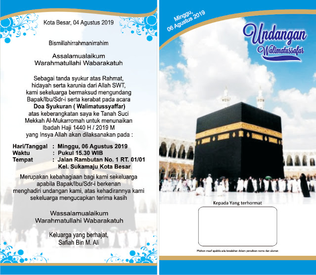 Contoh Surat Undangan Syukuran Keberangkatan Haji Walimatus Safar | Belajar Office