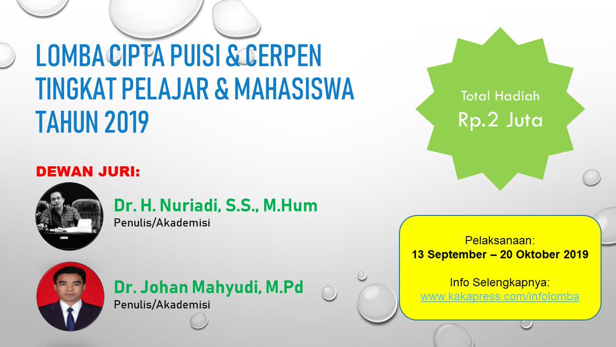 Info Lomba Menulis on Twitter: “#Lomba Menulis Puisi dan Cerpen Tingkat Pelajar dan Mahasiswa hadiah Uang Tunai @kakapress Deadline 20 Oktober 2019. Info : https://t.co/xa2J3ORwLO… https://t.co/xAXpT4fBaV”