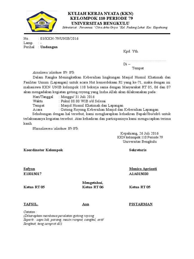 Contoh Surat Undangan Gotong Royong Contoh Isi Undangan – Cute766