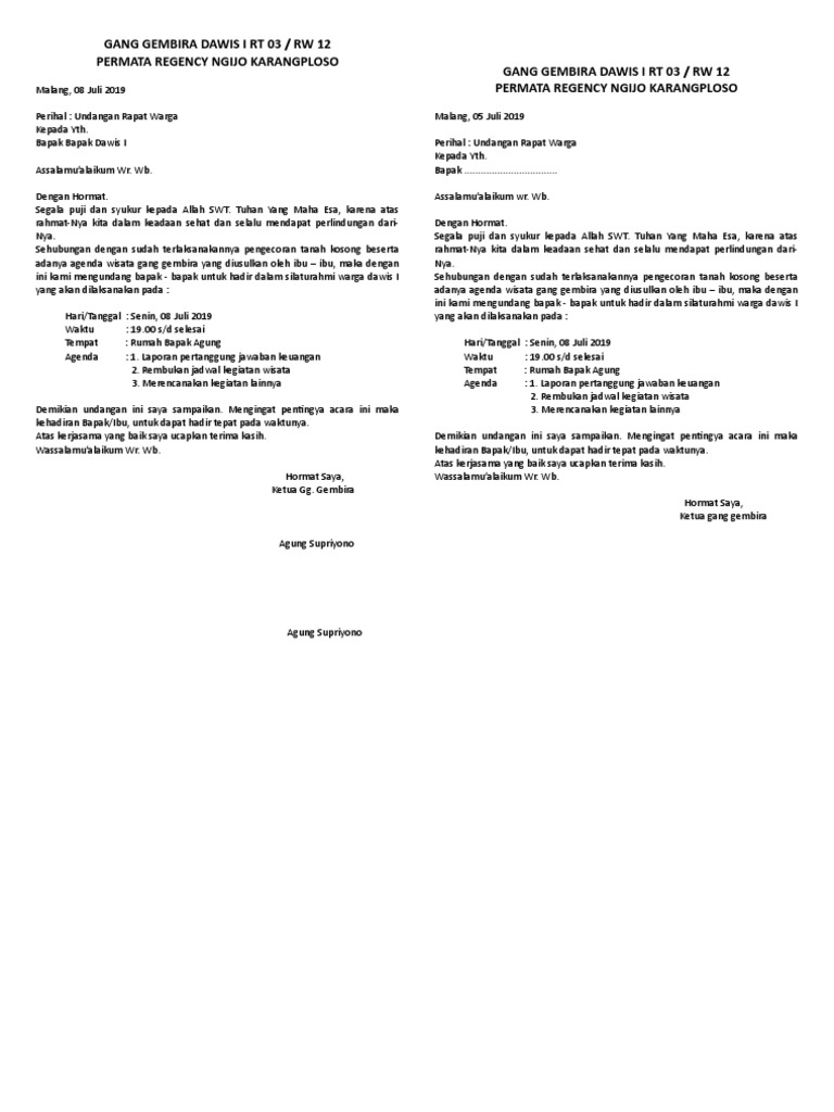 RW 5 Karanglo, Karangdukuh: Contoh Undangan Rapat Pemilihan Ketua RW dan Ketua RT