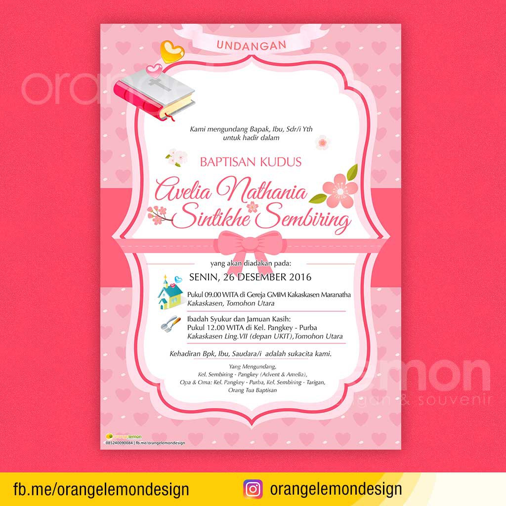 Undangan Baptisan Tema Love Pink, Pink Ribbon, Pink Frame + Foto Anak | Shopee Indonesia