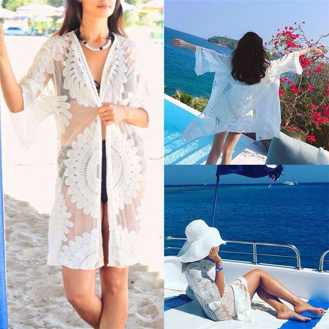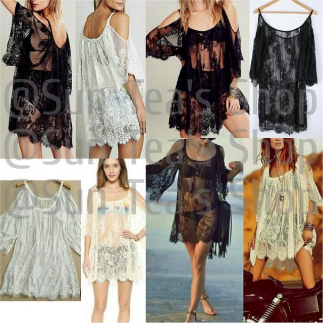 OT41 White lace bikini cover open shoulder mini dress, Olshop …