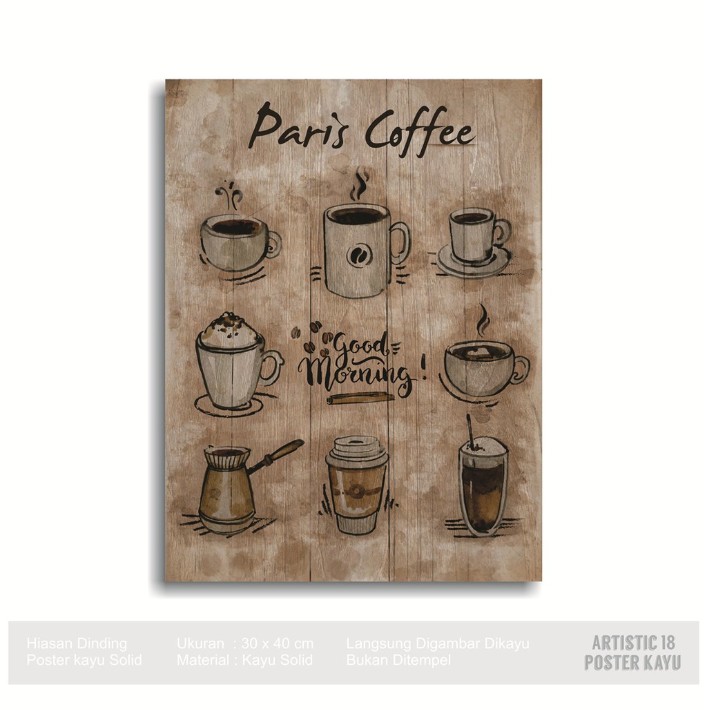 Hiasan Dinding Poster Kayu Rustic Artistic18 Drink Coff | elevenia