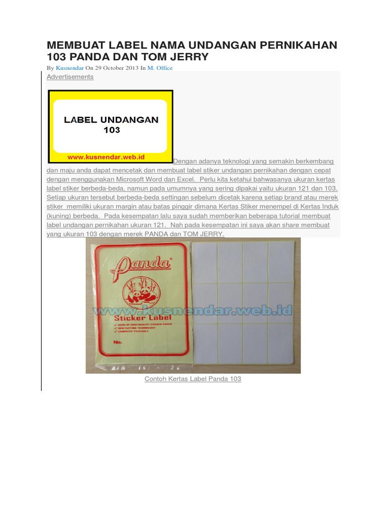Cara Membuat Label Undangan Otomatis 103 Dan 121 Siap Print Di Office Word | Info Menarik