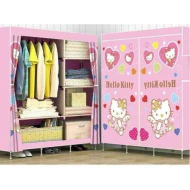 Jual lemari rak baju pakaian kain portable bisa bongkar pasang ukuran kecil mini single hello kitty | Shopee Indonesia