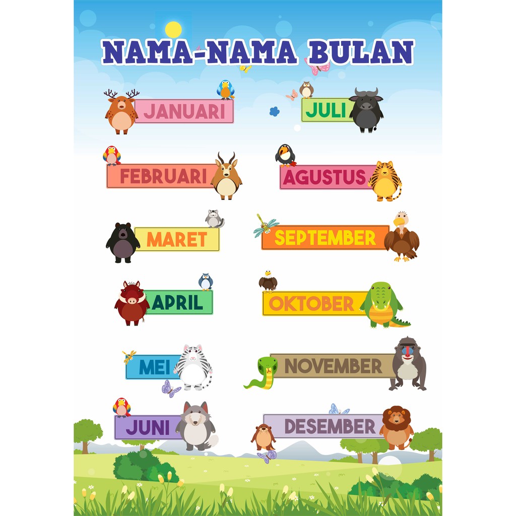 Poster Nama Bulan | Edu-09 | Poster Animasi - Poster Custom - Poster Edukasi | Shopee Indonesia