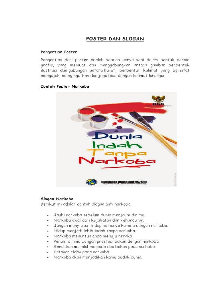 73 Contoh Slogan Anti Narkoba Dalam Bahasa Indonesia Lengkap - PDF Free Download