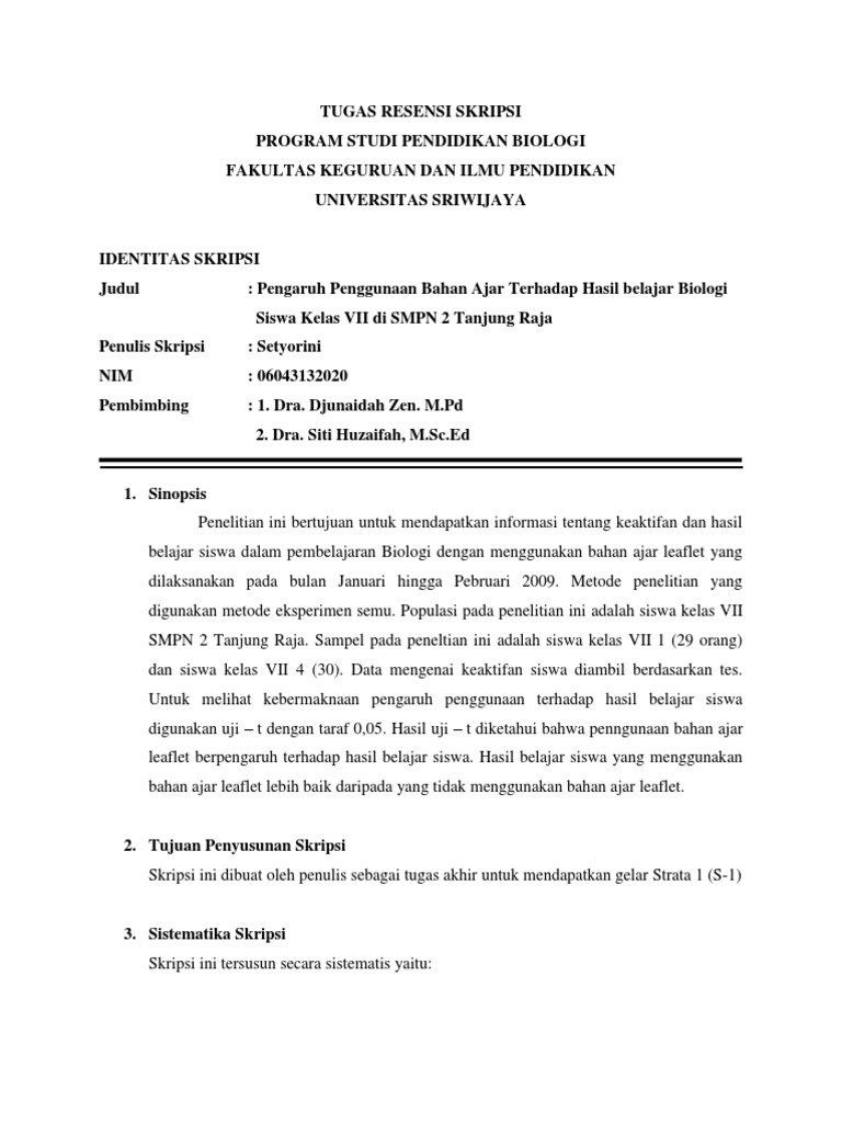 DOC) TUGAS RESENSI SKRIPSI PROGRAM STUDI PENDIDIKAN BIOLOGI | Irsyaad Fadhlurrahman - Academia.edu