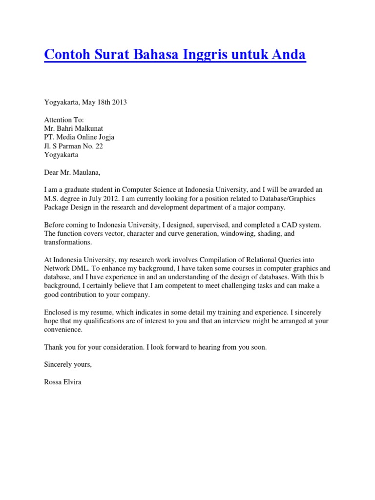 Contoh Surat Bahasa Inggris - Guru Ilmu Sosial