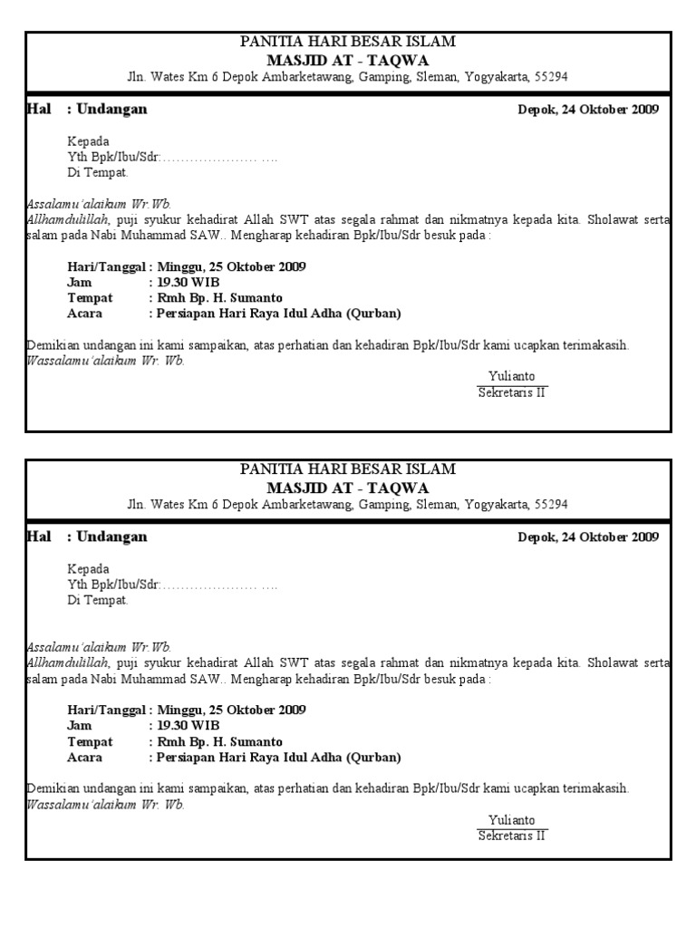 Contoh undangan pembentukan panitia qurban 2019 - SERBANDESO Blog