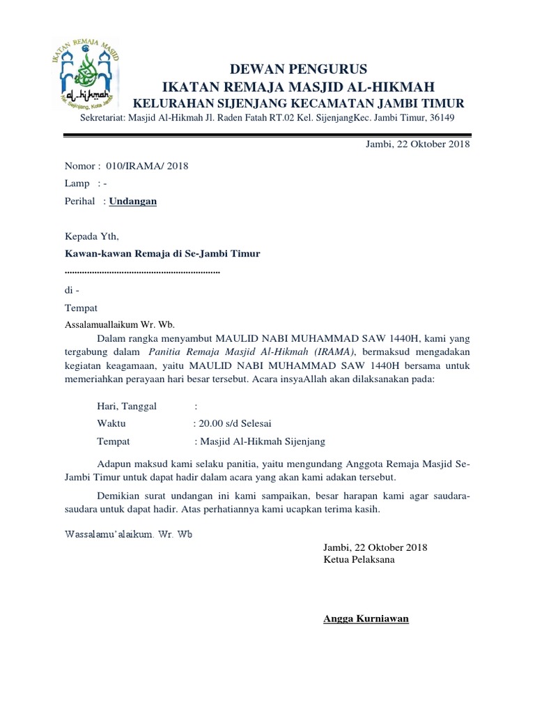 DOC) Contoh surat undangan DKM Masjid | Tirta Handyan - Academia.edu