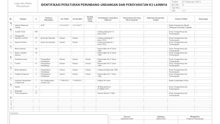 Formulir Identifikasi Peraturan Perundang-undangan dan Persyaratan Lainnya - Manajemen K3 Umum