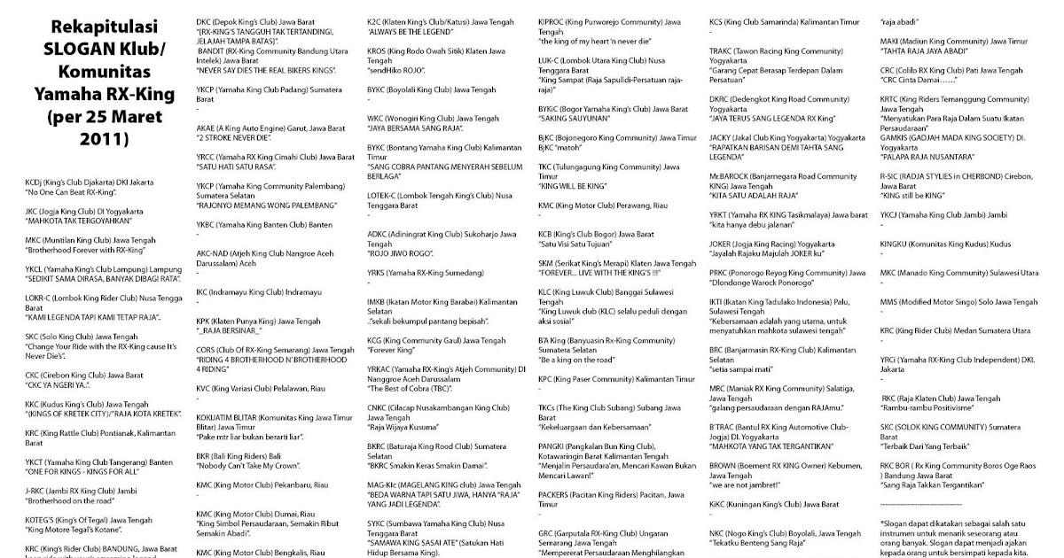 King’s Club Bogor (KCB): Rekapitulasi SLOGAN Klub/Komunitas Yamaha RX-King (per 25 Maret 2011)