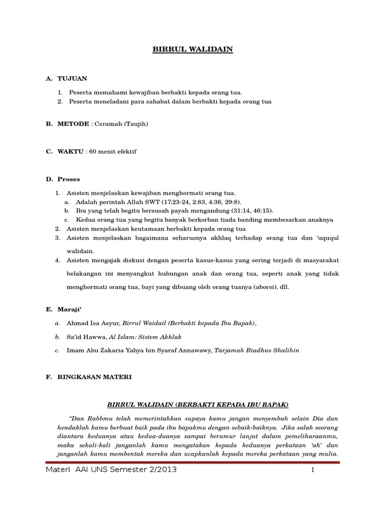DOC) Ceramah tentang birrul walidain atau berbakti kepada kedua …