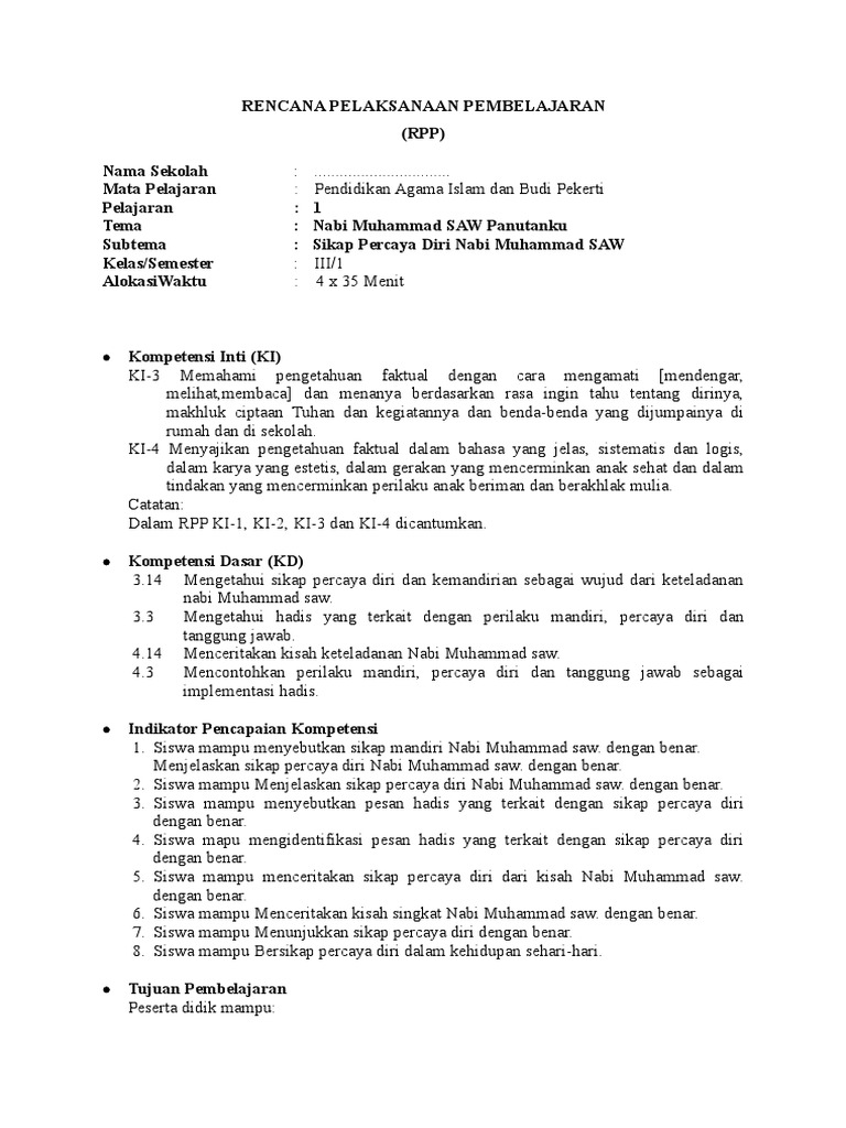 Materi pai kelas 3 Hadits tertang periaku mandiri, percaya diri …