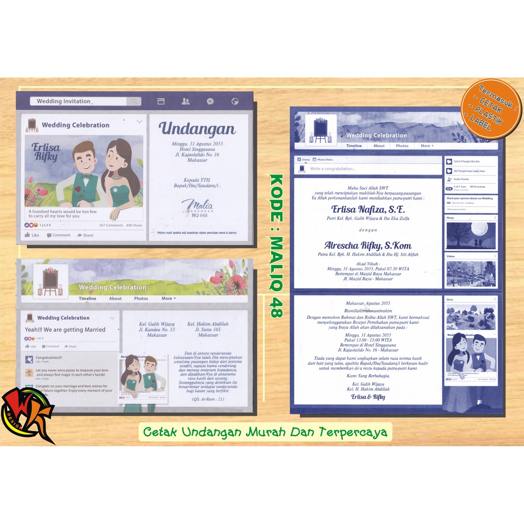 Cetak Undangan pernikahan dan khitanan modern, simpel, murah, kode : Maliq 48 | Shopee Indonesia