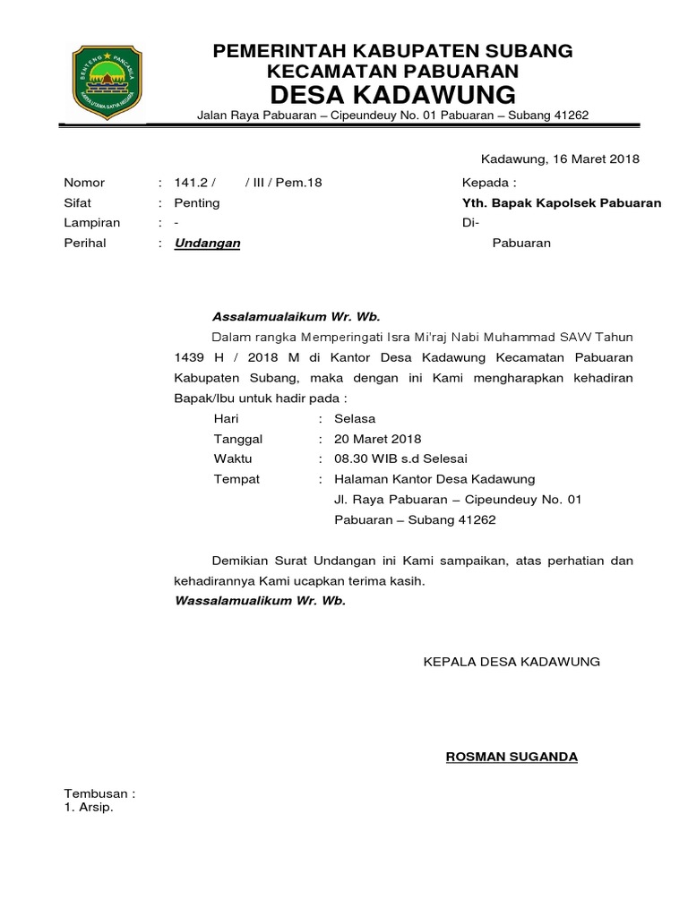 Contoh Surat Undangan Isra' Mi’raj Nabi besar Muhammad SAW 1440 H. ~ Kampung KB “Tumbuh Jaya”