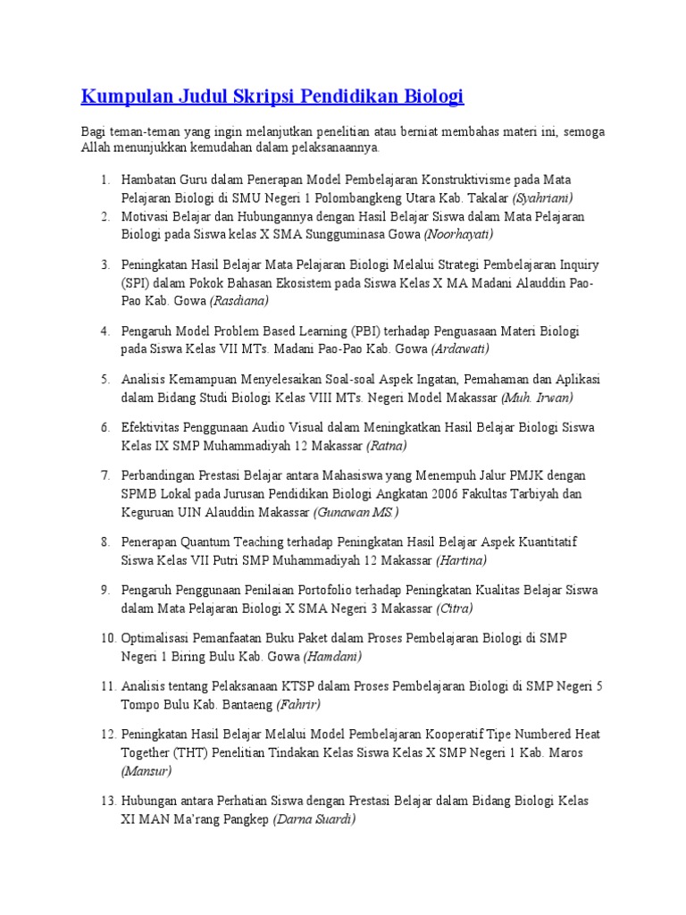 Kumpulan Judul Skripsi Pendidikan Biologi