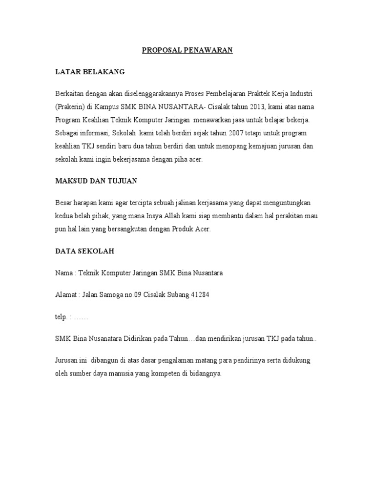 Contoh Proposal Penawaran Produk Pdf Download - lasopatelecom