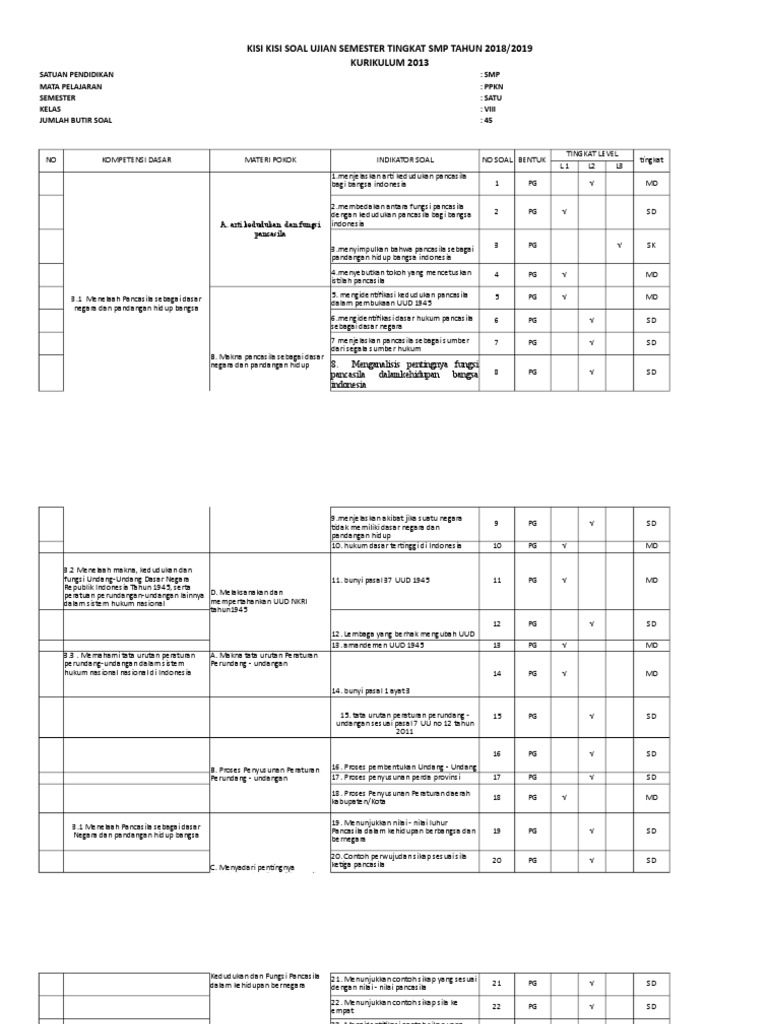 Kisi - Kisi Soal Ppkn Kls Viii k.13 2018 Ok