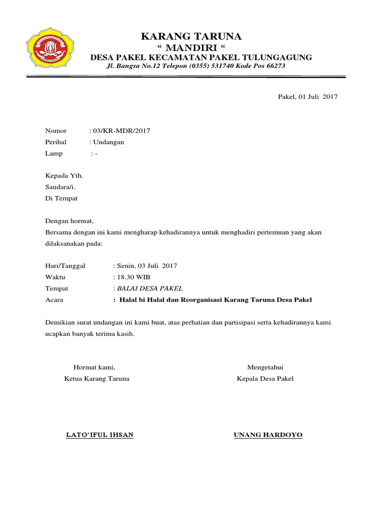 Contoh Surat Undangan Halal Bi Halal Karang Taruna - Kumpulan Surat Penting