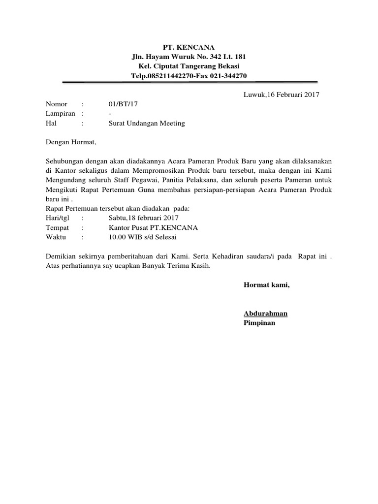 16 Contoh Surat Undangan Rapat Perusahaan, Sekolah, dll - Contoh Surat