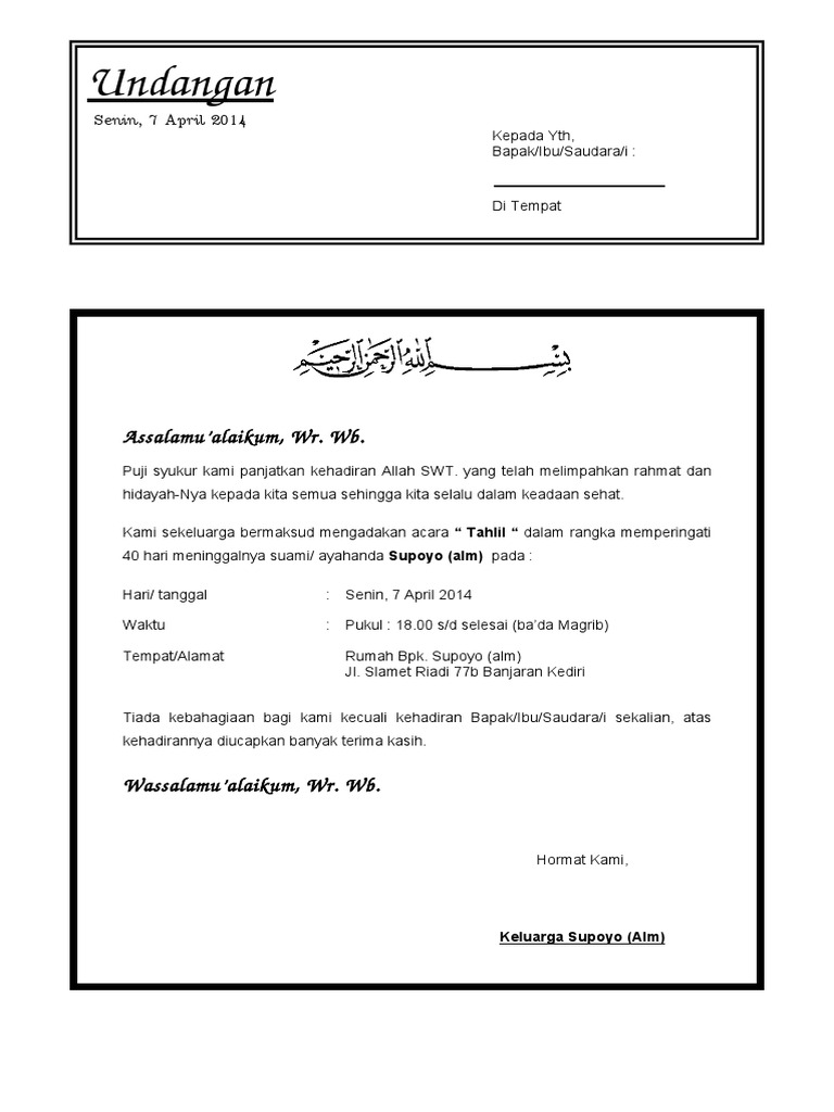 DOC) Contoh Undangan Tahlilan 40 Hari Meninggalnya | Haekal Iqbal - Academia.edu