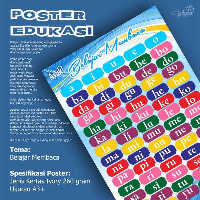POSTER EDUCATION - learn to read vowels accompanied by a unique syllabic interesting tsaqif design | Shopee Singapore