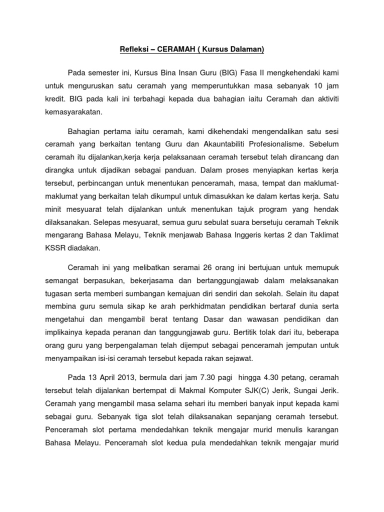 Refleksi kursus dalaman